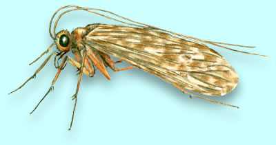 Stoneflies, order Plecoptera, are distinguished by two long thin tails projecting from the rear of the abdomen.