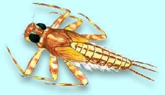 Three long tails usually occur at the end of the body. Mayflies do not tolerate pollution well.