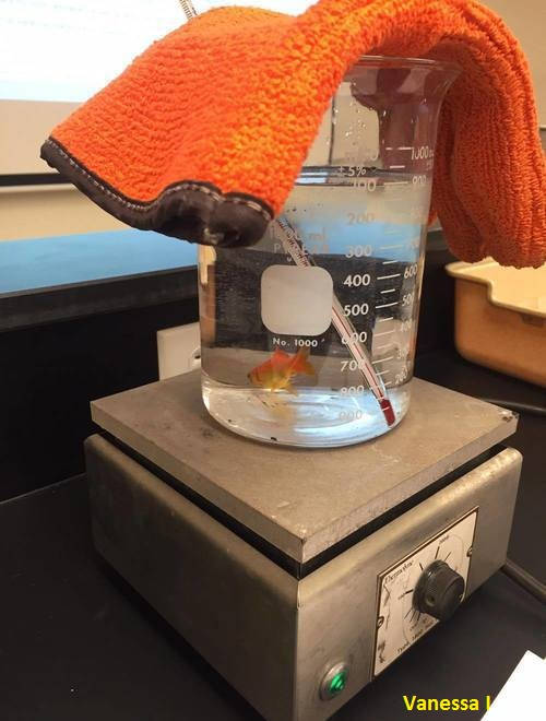 try heating the experimental beaker (with fish in it) on the hot plate, and heat the water SLOWLY.